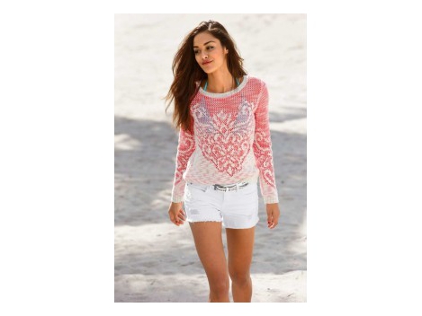 Effektvoller Grobstrick mit einem Hauch Glamour durch die spezielle, silberglänzende Beschichtung. Vorne mit gebogtem Saumverlauf. Modisch hinten etwas länger....