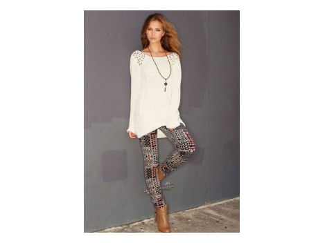Lässige Maschen, ausgefallener Style - ein Lieblings-Stück zum rundum Wohlfühlen! Schultern mit applizierten Nieten. Grobstrick, zierende Zöpfe in Raglanoptik. Weiter Rundhalsausschnitt. Hinten etwas länger geschnitten als vorn. Rippenstrickbündchen an Ärmeln und Saum. Hintere Länge ca. 77 cm. Wärmender Grobstrick aus 100% Polyacryl.