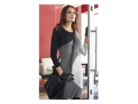 Strick-Style ganz en vogue im angesagten Colour-Blocking - extrem feminin und ein tolles Farberlebnis. Figurnahes Modell aus weichem Feinstrick, mit trendstarkem, großflächigem Muster. Rundhalsausschnitt, langer Arm. Länge ca. 90 cm. Sehr trageangenehme Qualität aus 50% Baumwolle/50% Polyacryl.