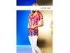 Žaismingas, kaprizingas marškinėliai su madingu gėlių spausdinimo Allover. Laisvalaikio supjaustyti su elastiniu juosmeniu ir pynimas Podolę apsipirkti sudarymo...