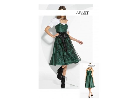 Apart interpretiert das Oktoberfest neu und kombiniert traditionelle Trachtenmode mit moderner Raffinesse. Das Dirndl lässt sich nicht nur zur Wiesn ausführen, sondern überzeugt auch als festliches Partykleid. Mit den passenden Accessoires geschmückt sind Sie das Highlight im Festzelt. Zauberhaftes Corsagenkleid mit breiten, abknöpfbaren Trägern und weit ausschwingendem Rockteil. Aufwendig gesteppte Teilungsnähte schaffen eine besonders reizvolle Silhouette. Blickmagnet ist die elegante Schürze aus schwarzer Netzware mit grüner Lurexgarn-, Pailletten- und Perlen-Stickerei. Breite, schwarze Taft-Bindebänder. Der separate, schwarze Tüll-Petticoat schafft besonders reizvolles Volumen. Ob als Corsagenkleid mit oder ohne Träger oder als Dirndl getragen - mit dieser vielseitigen Kreation liegt Spannung in der Luft. Nehtfeiner, Rückwärtiger Reißverschluß. Hochedles Changeant-Material aus 100% Polyester. Futter aus 65% Polyester/35% Baumwolle. Länge ca. 114 cm. Schürze und Unterrock aus 100% Polyester. Ohne abgebildete Bluse.