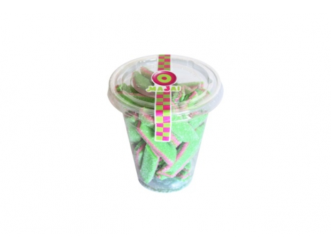 ARBŪZŲ skonio guminukai RŪGŠTI LAZANIJA, Majai, 200gSudedamosios dalys: cukrus, gliukozės-fruktozės sirupas, invertuotas cukraus sirupas, KVIETINIAI miltai (sudėtyje yra gliteno), kukurūzų krakmolas, glajinė medžiaga: palmių riebalai, rūgštingumą reguliuojančios medžiagos: citrinų rūgštis, obuolių rūgštis, vyno rūgštis; drėgmę išlaikanti medžiaga: glicerolis; bulvių krakmolas, standiklis: želatina; emulsiklis riebalų rūgščių mono ir digliceridai, kvapiosios medžiagos, vaisių ir daržovių koncentratai: juodųjų serbentų, morkų; dažikliai: E100, E120, E133, E171. Laikyti sausoje, vėsioje vietoje. Grynasis kiekis 200g. K