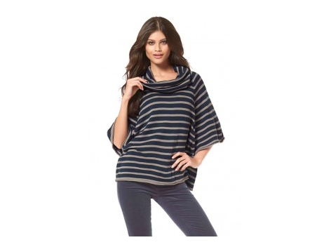 Rundum ein stylisches Fashion-Teil mit maximalem Blickfang-Faktor! Frecher Kurzarm-Style im Strickmix. Mit Kapuze, überschnittenen Schultern und dekorativen Knö...