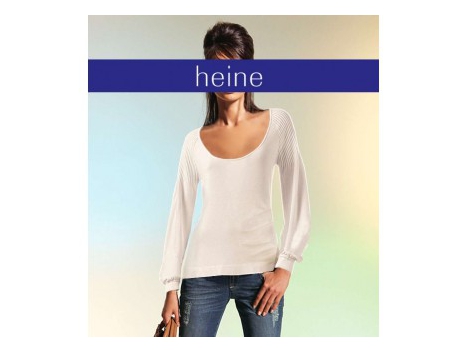 Ein Evergreen der Kombimode. Junger, sportiver Pullover mit großem V-Schlitz am Rundhalsausschnitt und kleinen Schlitzen seitlich am Saum. Rollkante an Saum und...