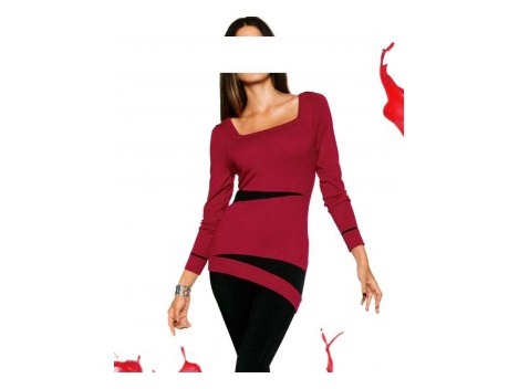 Permatomas briaunoti megztinis su tikrais Combi savybes. Madingi trumpa forma su plačiu įgulos kaklo. Pav hugging formos. Bendras ilgis apie 52 cm. Minkštas, sm...