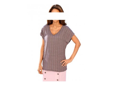 Žavingas spausdinimo marškinėliai su nuostabų spalvų žaismas - žavinga akį! Dabartiniai cut-out prie peties. V-kaklo priekyje ir gale. Suapvalinti kišenės, elas...