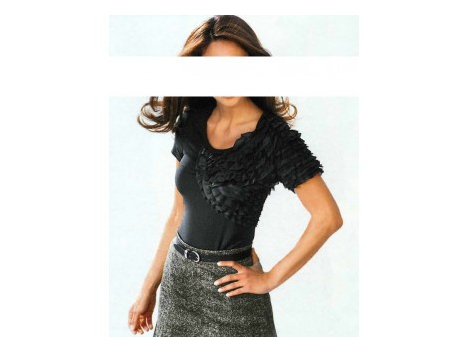 Vasaros myli nuostabiai lengvas medžiagas ir įspūdingas detales. Aistringas rinkinys vaizdo dizaineris marškinėliai su dekoratyviniais susiėmę pečių ir rankovių. Patch pilnas įmantrybių raukiniai etapą satino ir šifono kaita pabrėžti ekstravagantišką stilių. Ilgis apie 60 cm. Pav hugging formos. Minkštas apranga pagamintas iš 95% viskozės / 5% elastanas. Chiffon ir satin Ruffles 100% poliesteris.