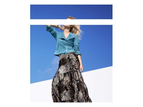 Viliojanti romantišką išvaizdą su hipių-siela. Spirited žingsnis dizainas ir madinga roplių spausdinti. Elastinė juosta juosmens. Ilgis apie 96 cm ilgio ir pūvančių su falbankami. Lengvas skaidrus kokybės su gražia blizgesio 100% poliesterio.