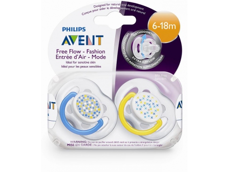 "AVENT" silikoninis čiulptukas 6-18mėn.2vnt.(1/828)Mamyčių ir mažylių patogumui! Čiulptukai Free Flow turi storesnį suapvalintą skydelio kraštą, kuris palieka daugiau vietos nosytei. Šių čiulptukų skydelis turi daugiau skylučių orui, jo forma apsaugo nuo seilių kaupimosi ir saugo nuo odelės dirginimo. Šie ventiliuojamieji susispaudžiantys ir simetriški čiulptukai užtikrina taisyklingą gomurio, sukandimo, dantų vystymąsi, netgi jeigu kūdikis jį apverčia savo burnytėje. Ventiliuojamuosius čiulptukus galima sterilizuoti garuose. Kiekvienas čiulptukas turi apsauginį dangtelį, kuris padeda žinduką išlaikyti sterilų tol, kol jis bus naudojamas. AVENT silikoniniai čiulptukai yra beskoniai ir bekvapiai.AVENT pralaidūs čiulptukai leidžia orui cirkuliuoti už ir aplink čiulptuką, todėl kūdikiams maloniau, o taip pat jie puikiai tinka net ir jautriausią odą turintiems mažyliams.Spalvos: rožinė - geltona, melsva - geltona.DĖMESIO: perkant šiuos čiulptukus užsakymo formoje esančiame laukelyje PASTABOS nurodykite pageidaujamą spalvą, kitokiu atveju spalva bus parenkama atsitiktinai.