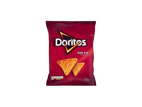 BARBEKIU SKONIO kukurūzų traškučiai Doritos, 102gSudedamosios dalys: kukurūzai (pilno kukurūzo branduolio), saulėgrąžų aliejus (14%), rapsų sėklų aliejus, barbekiu skonis [kvapiosios medžiagos (svogūnų milteliai, paprikos ekstraktas), druska, dekstrozė, cukrus, rūgštingumą reguliuojanti medžiaga (natrio diacetatas), rūgštis (citrinos rūgštis), dūmo skonis].Sudėtyje gali būti: pieno, kviečių, gliuteno, miežių, sojos, salierų, garstyčių.Maistinė vertė 100g: energinė vertė 2060 kJ/493 kcal, riebalų 25,6g, iš kurių riebalų rūgščių 2,1g, angliavandenių 56g, iš kurių cukraus 3,4g, baltymų 6,2g, druskos 1,78g, skaidulų 6,9g.