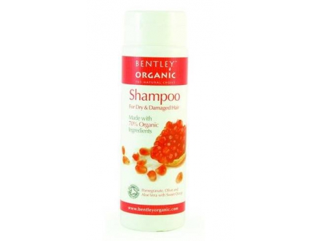 "BENTLEY ORGANIC" ekologiškas plaukų šampūnas sausiems ir pažeistiems plaukams (su granatais), 250mlPagaminta iš Gamtos, o ne gamtos Gamtos kaina! Bentley Organic - Jungtinėje įkurta kompanija, turinti 150 metų patirtį muilo gamybos pramonėje. Visi Bentley Organic gaminiai turi ekologišką sertifikatą, patvirtintą Jungtinės Karalystės Soil Association. Tai yra užtikrinimas Jums, kad produktai yra ekologiški.Su granatais, alyvuogėmis, alaviju ir saldžiaisiais apelsinais. 70% šampūno sudedamųjų dalių yra ekologiški ingredientai. Apelsinų aliejus turi stimuliuojančių savybių, alavijas, granatas ir alyvuogių aliejus maitina plaukus, juos atgaivina ir puoselėja. Naudojimas: išspauskite reikiamą kiekį šampūno į delną, tolygiai paskirstikite ant sudrėkintų plaukų nuo šaknų iki galiukų. Švelniai pamasažuokite. Išskalaukite ir prireikus trinkimą pakartokite.
