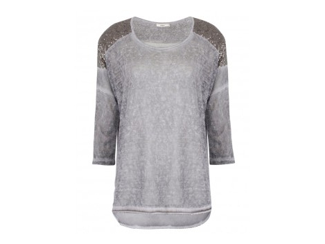 Einfach entspannen und sich wohlfühlen! Ein tolles Basic mit aufwendiger Tigerkopf-Paillettenapplikation vorn. Tiefer Rundhalsausschnitt, langer Arm. Hinten län...