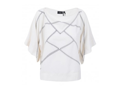 Detailverliebtes Lieblingsshirt mit Cut-outs an den Schultern und Strass-Steinen auf den Trägern. Leichter Wasserfallausschnitt. Figurbetonende, etwas längere F...