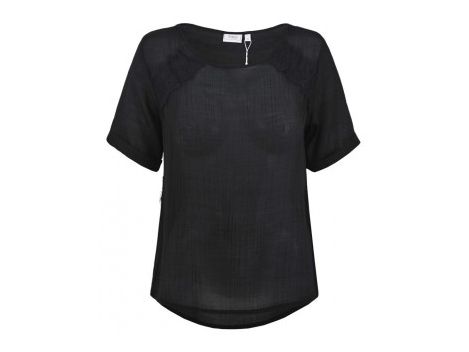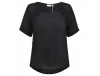 Žavingas moteriškas marškinėliai stiprios spalvos ir su dekoratyviniu mazgas pažvelgti į kairę. Giliai V-iškirpte ir trumpomis rankovėmis. Didžiosios duetas - v...
