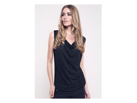 Detalė Verliebtes mėgstamiausia marškinėliai su išpjovimą ant pečių ir cirkonio ant juostų. Šviesos gaubtas. Labai figūra glostantis, šiek tiek ilgiau forma. Il...