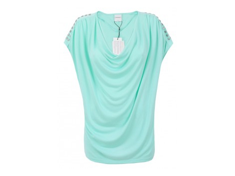 Detailverliebtes Lieblingsshirt mit Cut-outs an den Schultern und Strass-Steinen auf den Trägern. Leichter Wasserfallausschnitt. Figurbetonende, etwas längere F...