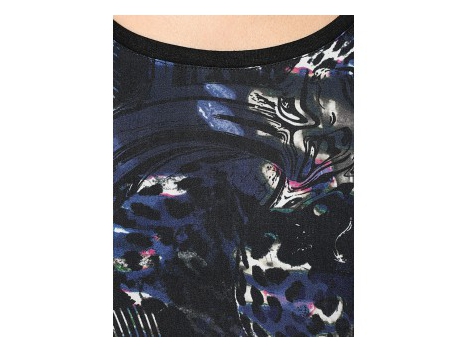 Stilius žvaigždė su madinga Exotic spausdinimo priekyje ir gale. Juoda 3/4 ilgio rankovėmis. Ilgis apytikriai 64 cm. Forma montavimo forma. Bauda teka apranga a...