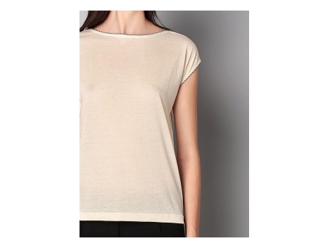 Kūrybinis dizainas pareiškimas dėl tauriųjų Basic. Fancy marškinėliai su dekoratyviniu, kontrastingos Häkelspitzenbesatz iškirpte. Atsitiktiniai lašas pečių. El...