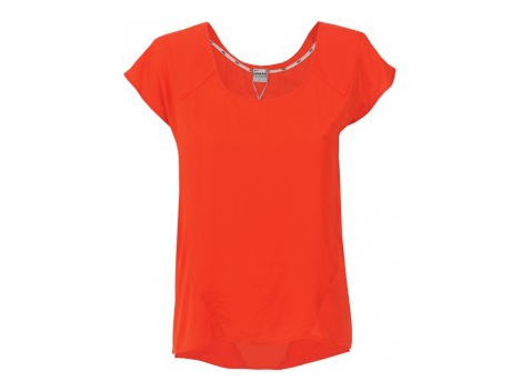 Ein Catwalk-Highlight mit kreativem Design-Statement. Raffinierte 2-in-1-Optik: Der sanft fallende Wasserfallausschnitt wird von einem knöpfbaren Satineinsatz m...