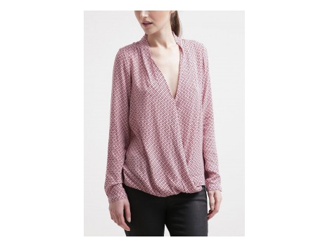 Stilingas viršutinis sluoksnis n su skirtingomis optika skirtos dekoratyvines sagas. Viršutinė dalis su giliai gaubtas kaklo, apatinė dalis šiek tiek skaidrus V...