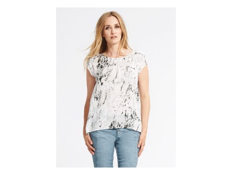 Stylishes Shirt für modische Kombinationen. Cooler Frontprint, edel verziert mit kleinen Glitzersteinchen. Silberfarbene Ziernaht an den Abschlüssen. Ärmelsaum...
