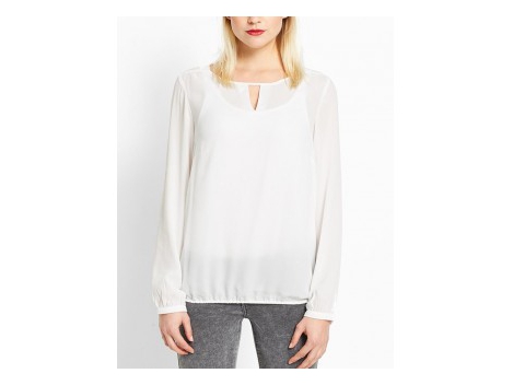 Ein hitverdächtiger Kombipartner - elegant und von einzigartiger Wirkung. Der neon-pinkfarbene Chiffon-Einsatz und die Chiffon-Blüte am Rundhals-Ausschnitt bewe...
