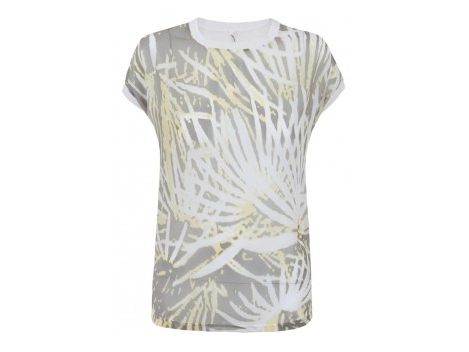 Sudėtingos transmisija su paslaptingu žavesiu. Didysis vasaros Pagrindinis spalvos su intensyvų spaudimą. Trumpas rankovė su lupena, apvalios kaklo. Laisvalaiki...