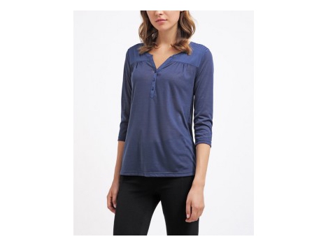 Souveräner Kombistyle ganz designerlike inszeniert. Super feminines Shirt in Wickel-Optik mit üppig drapiertem Schalkragen. Elastische Unterbrustnaht, langer Ar...