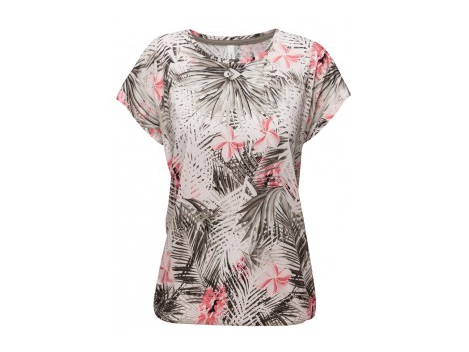 Sudėtingos krenta į akį žavinga stiliaus. Vasariniai marškinėliai su ¾ rankovėmis ir gėlių spausdinimo lape. Ilgis atitinka dydis apie 66 ir 76 cm, pratęstas pa...