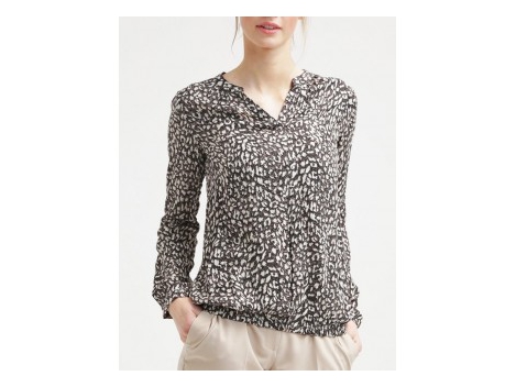 Spannendes Spiel mit Kontrasten. Ein Mode-Highlight mit temperamentvollem Mustermix und Blickfang-Garantie. Schimmernder Satin mit Ärmeln aus unifarbener Jersey...