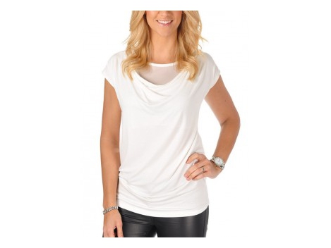 Ein Catwalk-Highlight mit kreativem Design-Statement. Raffinierte 2-in-1-Optik: Der sanft fallende Wasserfallausschnitt wird von einem knöpfbaren Satineinsatz m...