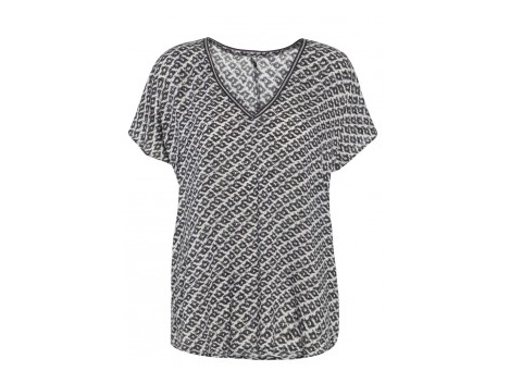Kūrybinis dizainas pareiškimas dėl tauriųjų Basic. Fancy marškinėliai su dekoratyviniu, kontrastingos Häkelspitzenbesatz iškirpte. Atsitiktiniai lašas pečių. El...