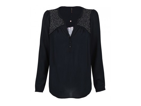 Designer-Chic mit magischer Wirkung. Edles Langarmshirt mit prachtvoller Strass- Applikationen am Rundhalsausschnitt. Unterhalb effektvoll gerafft. Figurbetonte...