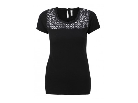 Stilingas marškinėliai sudėtingas 2-in-1 išvaizdą. Dirbo Wickeloptik surinkti apie su raišteliu ir kaklaraištis juostose pečių. Iš kontrastingos apynasris įdėkl...
