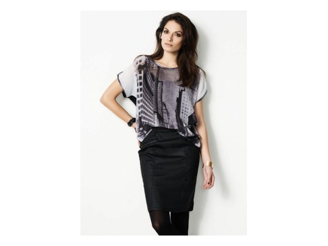 Elegantiška palaidinė. <br/> Trumpos rankovės. <br/> Ilgio corresponds dydį ~ 70 IKI 78 cm. <br/> Švelniai krenta, Medžiaga: 95% viskozės / 5% elastanas.