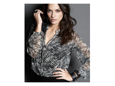 Sukurk Groovy akį į nuostabų verslo aprangą: Langarmmodell su rafinuotas Puoštas, asimetriškas iškirpte iš krioklio atrodo su limfmazgius išsamiai. Gößenangepas...
