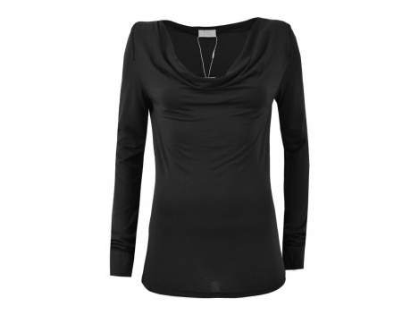 Ganz klar ein Eyecatcher mit besonders modischer Attitüde. Tolles Shirt in Wasserfall-Optik. Doppellagig gearbeitet. Tiefer Rundhalsausschnitt, langer Arm. Fig...