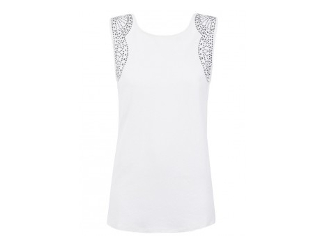 Hitverdächtiges Edel-Basic mit starken Details. Sportives Tanktop mit geblümten Seiden-Volants entlang des V-Ausschnitts. Im Ringel-Look mit kontrastfarbenen Kn...