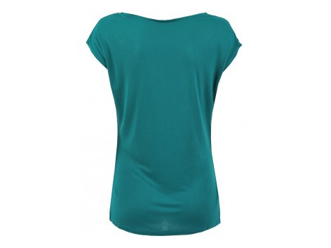 Žavingas moteriškas marškinėliai stiprios spalvos ir su dekoratyviniu mazgas pažvelgti į kairę. Giliai V-iškirpte ir trumpomis rankovėmis. Didžiosios duetas - v...