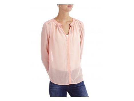 Žavinga, sklandžiai raukšles palaidinė su reguliuojamu pateikiami tik pagal biustas. Su subtilus iškirpte, šifono apsiuvas. Keturi dekoratyvines sagas ant krūti...