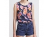 Moteriškumo pagrindinė su saldžiais informacijos. Dukart, atviras kraštus aplink V-kaklo su gana RUFFLES priekyje. Apie krūtinės gėlių spausdinimo, hem su elast...