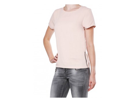 Žavingas moteriškas marškinėliai stiprios spalvos ir su dekoratyviniu mazgas pažvelgti į kairę. Giliai V-iškirpte ir trumpomis rankovėmis. Didžiosios duetas - v...
