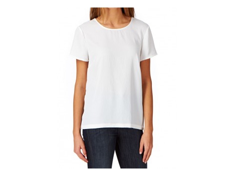 Žavingas spausdinimo marškinėliai su nuostabų spalvų žaismas - žavinga akį! Dabartiniai cut-out prie peties. V-kaklo priekyje ir gale. Suapvalinti kišenės, elas...