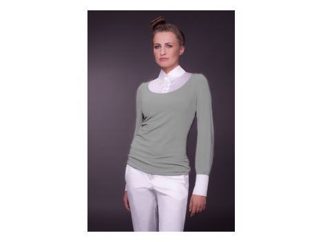 Modisch perfektes Kombitalent für Anspruchsvolle. Femininer Basic-Style mit raffiniertem Wasserfall-Kragen und kurzem Arm. Figurbetonende Silhouette. Länge ca....