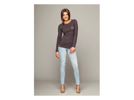 Fajny, klasyczny t-shirt z długim rękawem urozmaicony maleńką kieszonką. Fason blisko ciała, lekko elastyczny, seksowny. Ładny kolor, świetny do jeansów. Marka Esotiq.