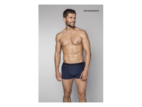 Stylowe bokserki uszyte z tkaniny, której geometryczny wzór imituje efekt 3D. Modna, wyrazista aranżacja. Stonowany, granatowy kolor. W pasie tunel z krytą gumą. Profilowany panel stref intymnych zagwarantuje pełen komfort w ciągu całego, długiego dnia. Renomowany producent Henderson. Skład: 95% bawełna, 5% elastan.RozmiarObwód pasaS74-80M82-88L90-96XL98-104XXL106-110Tabela wyrażona w cm.