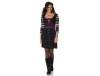 Unbeschwerter Chic! Ein Highlight der Maschen-Szene, aus edlem Feinstrick im effektvollen Materialmix mit Jersey. Streifendetails an Dekolleté, Taille, Rändern und den 3/4-langen Ärmeln setzen raffinierte Akzente. Layer-Optik mit femininem V-Ausschnitt und Einsatz. Figurbetonte Silhouette. Länge ca. 98 cm. Trageangenehme, schwarze Jerseyware aus 95% Viskose/5% Elasthan. Gestreifte Strick-Einsätze aus 50% Baumwolle/50% Polyacryl.