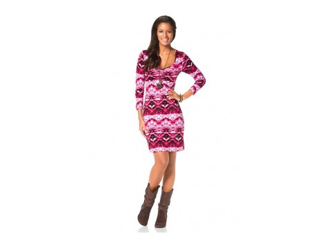 Dech akyse! Viliojanti paruošta šalis suknelė su madingas detales ir labai charizma. Gražus išvaizdą su kontrastingos, rožinė pulko spausdinti. Rankovių forma s...