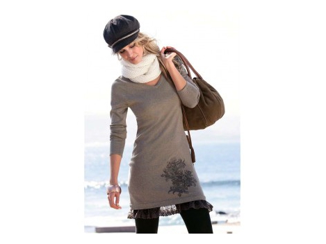 Diese Kreation versprüht exklusiven Charme. Modisch perfekt inszeniertes Strickkleid mit grandioser Detailverarbeitung. Rundhalsausschnitt, Mesh-Einsatz am Deko...