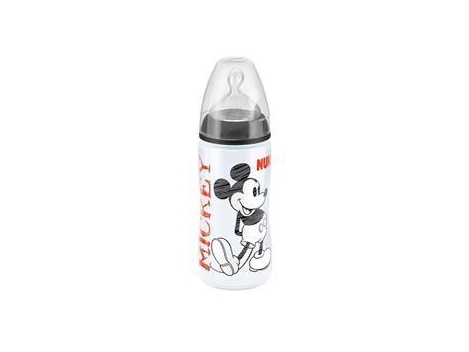 Buteliukas su silikoniniu žinduku M, Nr. 1, 6- 18 mėn., 300 ml, NUK FIRST CHOICE, DISNEY (10741535)  NUK FIRST CHOICE sistemiškai naudoja visus ortodontinius NUK žinduko formos privalumus, tinka derinant žindymą ir maitinimą iš buteliuko, išsaugant natūralaus žindymo pojūčius, kai negalite išimtinai žindyti pati. - 2 dydžio silikoninis žindukas (nuo 6 mėn.) „M“ (vidutinio dydžio skylute), skirtas pieno mišiniams.- Ortodontinės formos NUK žindukas su plačia ir kūdikio lūpoms patogia kaklelio dalimi ir „NUK Anti-Colic AIR SYSTEM“ – gėrimą iš buteliuko padarys kuo natūralesniu.- Buteliukai pagaminti iš aukštos kokybės polipropileno plastiko (PP), kurių sudėtyje nėra kenksmingų medžiagų – ypatingai lengvi, tvirti ir tinkami laikyti maistui šaldiklyje.- Patogus platus buteliukų kaklelis: paprasta įpilti ir išplauti.- Šiek tiek išlenkta buteliuko forma, kad laikyti būtų patogiau.- Platus buteliuko dugnas suteikia stabilumo.- Populiarūs motyvai iš „NUK Disney Mickey“ kolekcijos.- Galima naudoti kartu su visais NUK FIRST CHOICE gaminiais. SPALVOS: pilka, raudona. DĖMESIO: prekės paveikslėlis gali skirtis nuo pavaizduotos nuotraukoje. Užsakymo formoje esančiame laukelyje PASTABOS nurodykite pageidaujamą dangtelio spalvą, kitokiu atveju prekės bus parenkamos atsitiktinai.